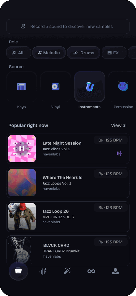 LoopHaven was designed to support discovery as an active part of music creation rather than a separate preparatory step. Instead of requiring producers to define intent upfront, the system responds directly to audio input, allowing ideas to evolve through listening and iteration.